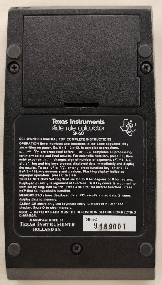 TEXAS INSTRUMENTS: SR50 (version-1)Bottom / Label, name plateS/N: SR509189001 (SR-50 9189001)