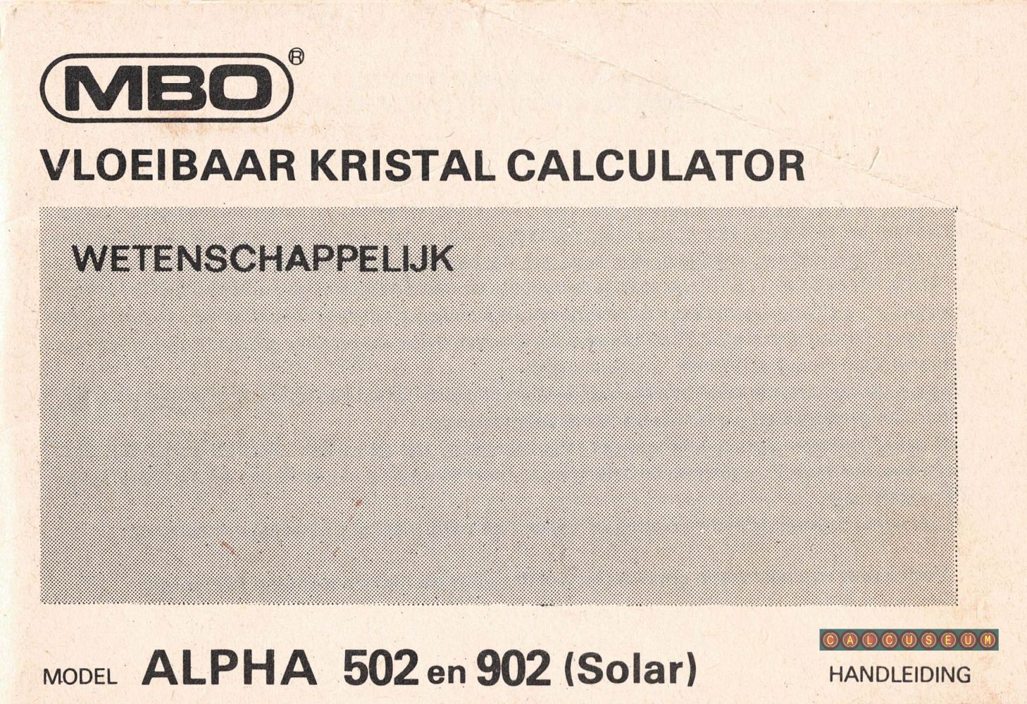 MBO_docu: (Instr.) *: 502,902AKA: MBO, VLOEIBAAR KRISTAL CALCULATOR, WETENSCHAPPELIJK, MODEL ALPHA 502 en 902 (Solar), HANDLEIDING
