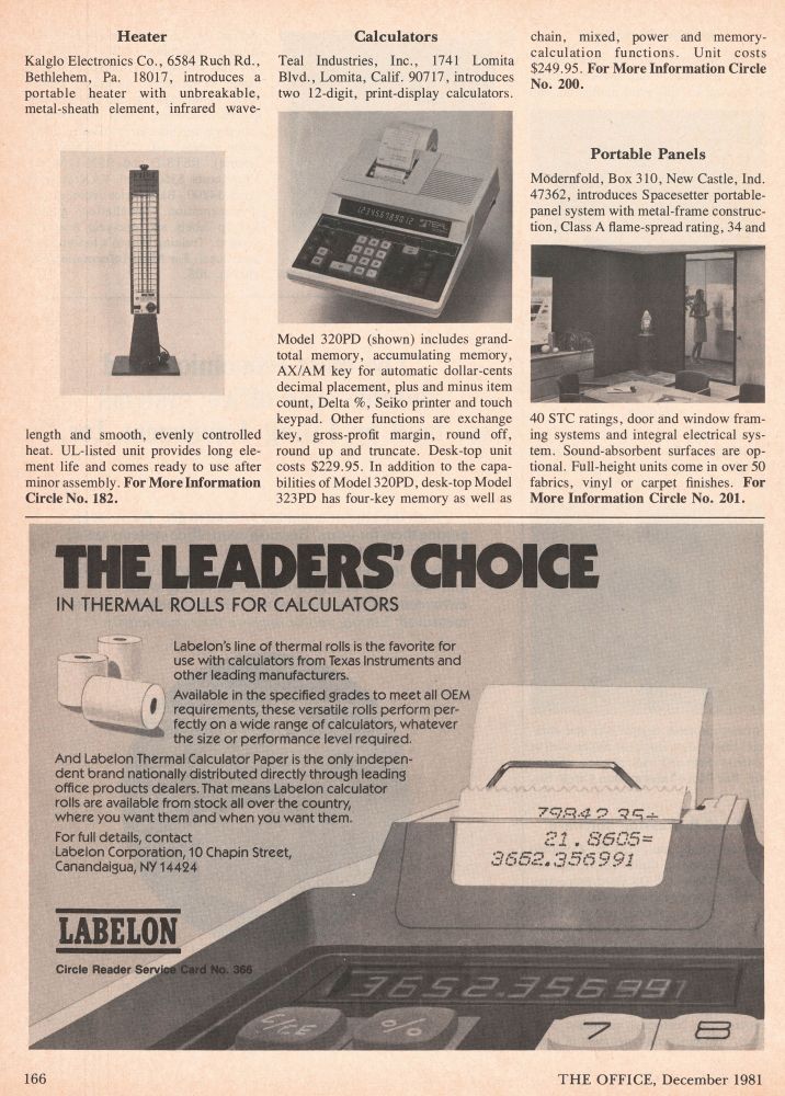 TOKYO ELECTRONIC APPLICATION LAB (TEAL)_docu: (Art.) 320PDAKA: Calculators
