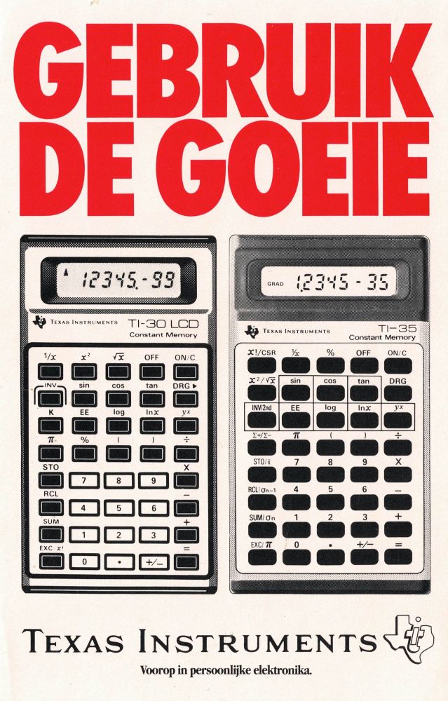TEXAS INSTRUMENTS_docu: (Sticker) *: 30,35AKA: GEBRUIK DE GOEIE, TEXAS INSTRUMENTS, Voorop in persoonlijke elektronika