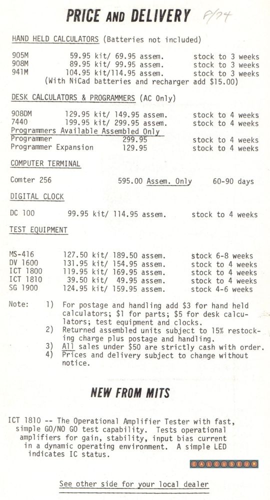 MICRO INSTRUMENTATION & TELEMETRY SYSTEMS (MITS)_docu: (PriceList) *AKA: PRICE AND DELIVERY