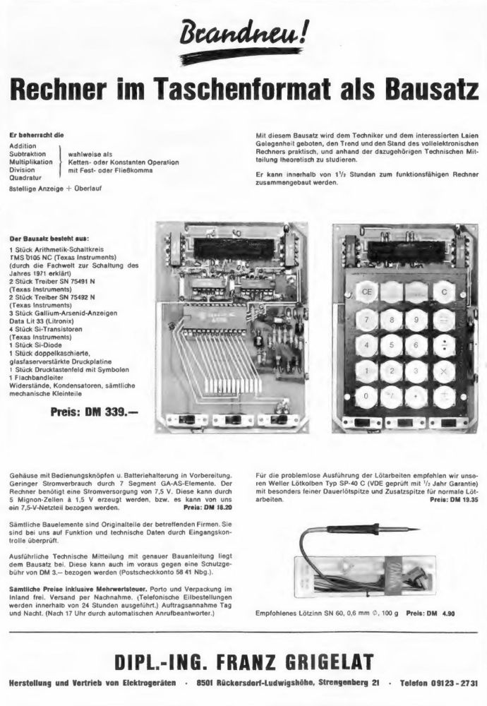 FRANZ GRIGELAT (FG)_docu: (Ad.) MultiplusAKA: Brandneu!, Rechner im Taschenformat als Bausatz