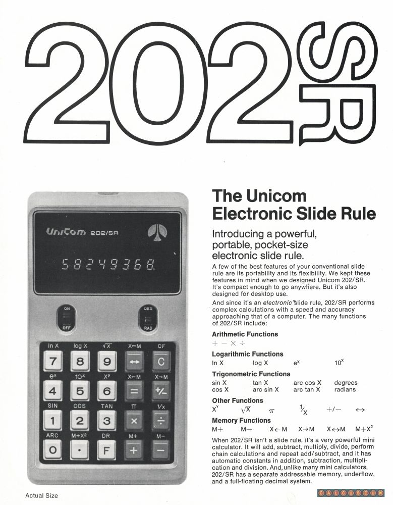 UNICOM_docu: (Broch.) 202SRAKA: 202SR, The Unicom Electronic Slide Rule