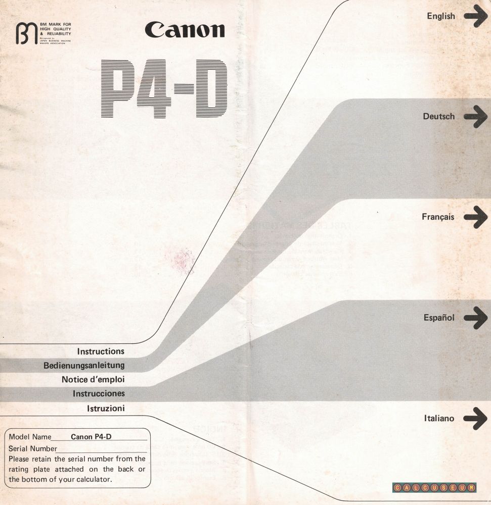 CANON_docu: IM03099A (Instr.) P4DAKA: Canon PD-4, Instructions, Bedienungsanleitung, Notice d'emploi, Instrucciones, Istruzioni