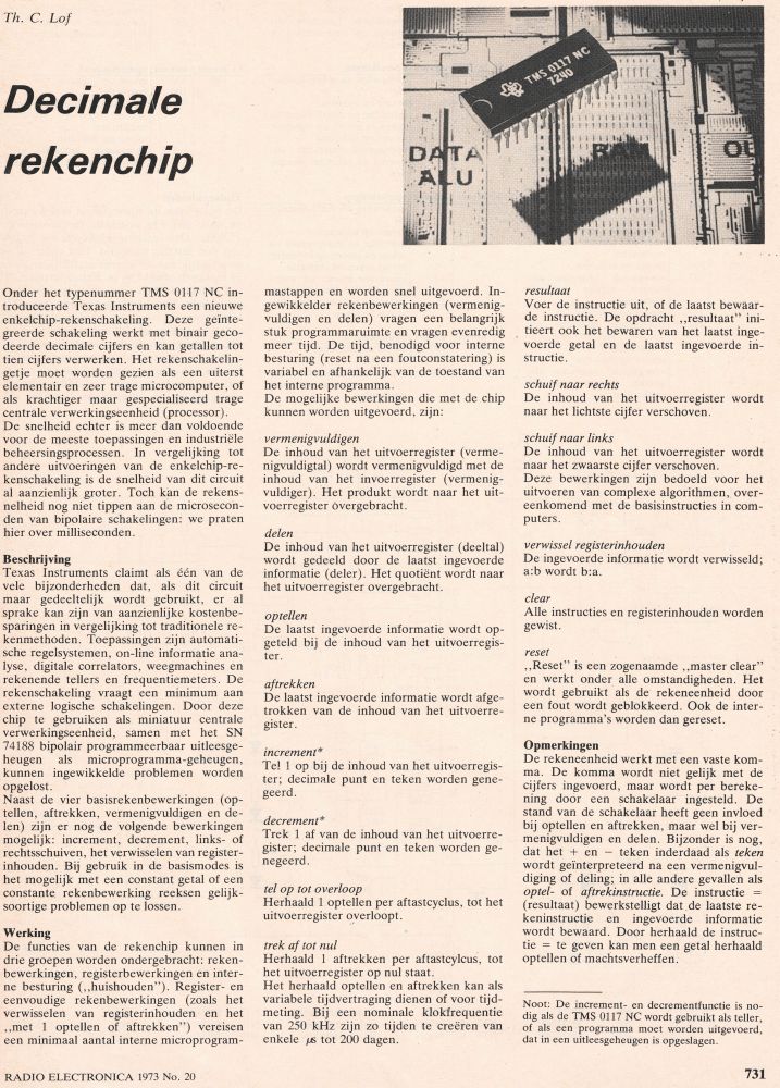 TEXAS INSTRUMENTS_docu: (Service) TMS0117NCAKA: Decimale rekenchip