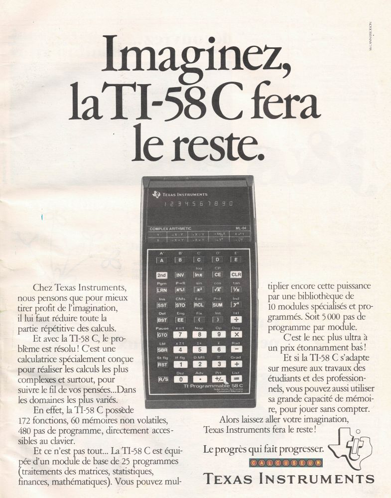 TEXAS INSTRUMENTS_docu: (Ad.) 58C: Imaginez, la TI-58C fera me resteAKA: Imaginez, la TI-58C fera me reste