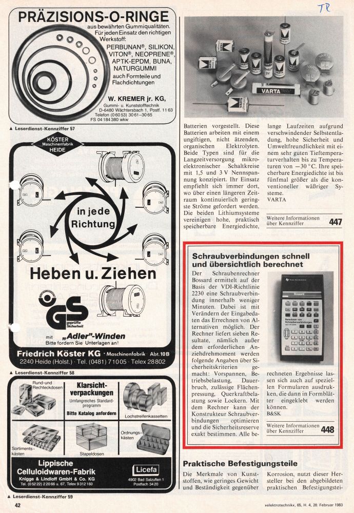 TEXAS INSTRUMENTS_docu: (Art.) 58,58C,59: BOSSARDAKA: Schraubverbindungen schnell und übersichtlich berechnet