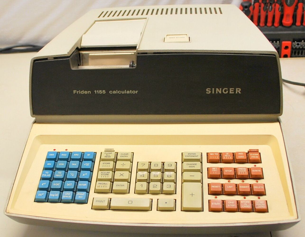 | The model 1155 is a calculator having a program capacity of 511 instruction steps, two working registers, and twenty data storage registers (each independent of program storage and working registers). Register capacity is 13-digits with a 2-digit exponent, plus decimal point and sign. Its dynamic range is: 10-99 to 1099. A plug-in magnetic card reader/recorder, reads and/or writes two 511 step programs. Provision is also made for plugging in an X-Y plotter. The printed tape output is accomplished by a small compact single print wheel, helical printer under control of the 1155 logic. |