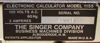 AKA: 1155 calculator, SINGER, AKA (Label): ELECTRONIC CALCULATOR MODEL 1155, Product number (P/N): 1155,