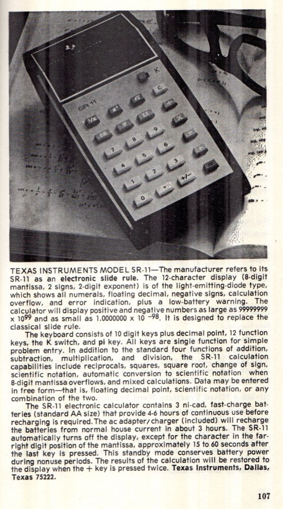 TEXAS INSTRUMENTS: SR11 (version-1)Book (fragment)Getting the most out of your Electronic CalculatorTAB BOOKS / HUNTER William L.(1974)